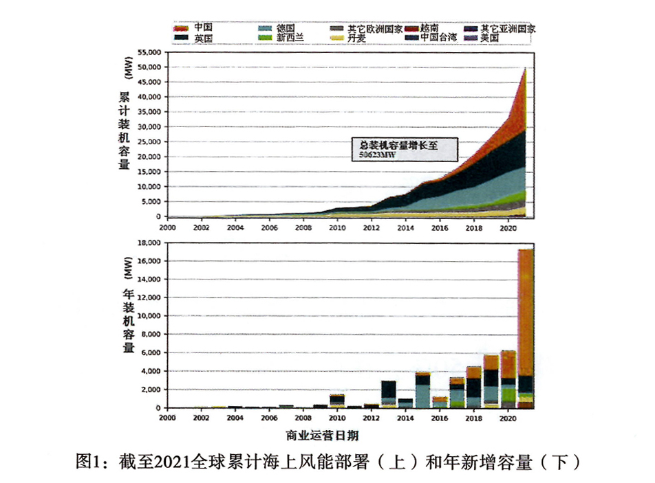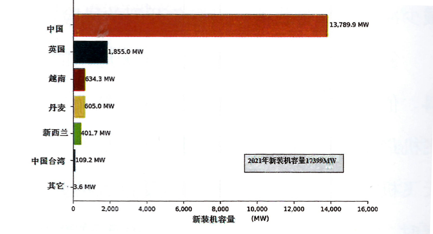 【概要描述】2021年,中國裝機容量為13,790MW,一年內裝機容量超過了全球以往任何一年的裝機容量.英國的年部署量僅次于美國,為1855MW,其次是越南(634MW)、丹麥(605MW)、荷蘭(402MW)和中國臺灣(109MW).到2021年底,海上風電總容量從254個運營項目增至50623MW。中國的快速崛起極大地改變了全球海上風電部署在歐洲和亞洲市場之間的分布。